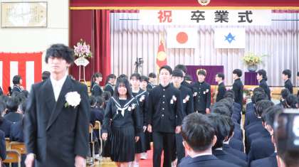 卒業生の退場です。在校生を含め、参列された方々より惜しみない拍手が送られました。