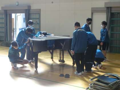 立派に巣立って行った3年生の姿に近づこうと、2年生が卒業式の式場や3年生の各教室・学年フロアなどの片づけを行ってくれています。