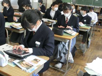 「室町時代の文化にはどのような特色があるのだろう」をテーマに学習が進められていました。各自で考えられることをどんどん調べています。