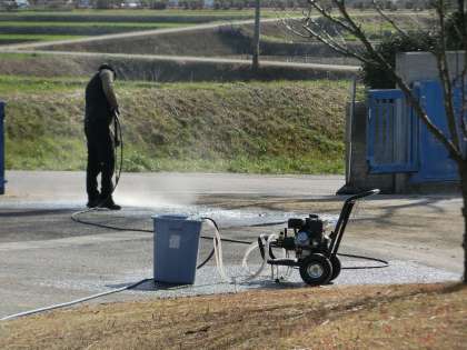 *先生たちも、自家用車や高圧洗浄機を使って整備してくださいました。