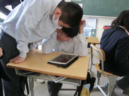 1・2学級の社会の授業の様子です。