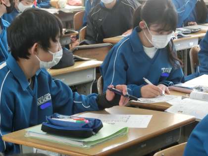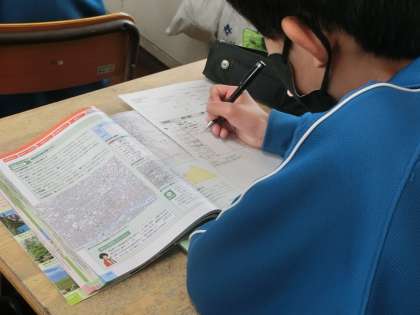 地形図の読み取りを学習すすため、「駅から市役所に行く方法を探そう」をテーマに取り組んでいました。