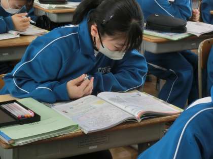 1年4組の社会・地理分野の授業の様子です。
