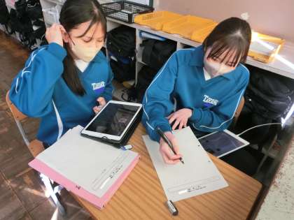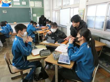 ジャンプ課題の「一年間で学習した内容の中からさらに深掘り」について学習が進められていました。興味をもった内容を中心に深掘りしていきます。中には仲間に分かりやすく学習内容を伝えるために、テーマを決めている生徒もいました。