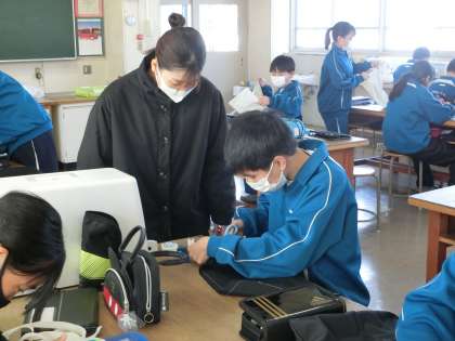 裁縫の学習で「エコバッグ」の製作に取り組んでいました。回を重ねるごとに上達してきたミシンの操作。また全ての工程で段取りが格段にレベルアップしています。完成したエコバッグ、家庭でもぜひ愛用してもらいたいと思います。