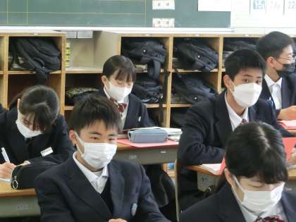 1年5組の英語の授業の様子です。 過去進行形の文法と活用について学んでいました。