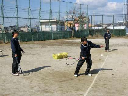 写真は、ソフトテニス部の活動の様子です。