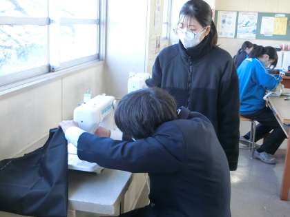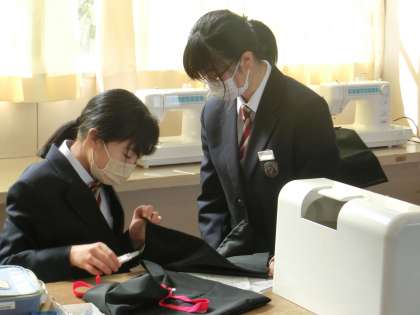 エコバッグづくりも最終段階に入っています。仲間の作品も参考にしながら、完成に向けて最後の確認です。