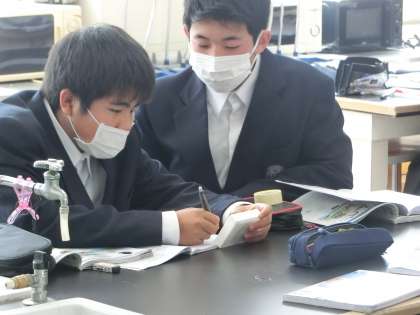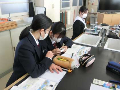 化石の特徴について学んでいました。実物を手に取り、じっくりと観察している様子が印象的でした。