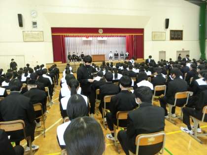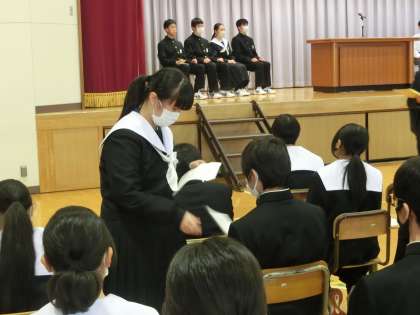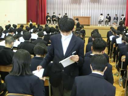 久しぶりに全員が体育館に集まり、立候補者の生の様子を見ながらの選挙となりました。今回は定員を上回る立候補者があり、高岡中学校をよりよい学校にしていこうとしている気持ちが伝わってくるものでした。