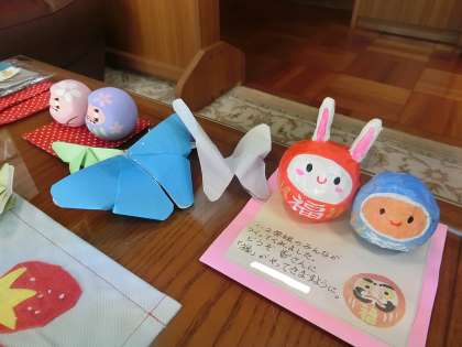 これがきっかけとなり、生徒たちの手作りの作品が校長室に寄せられるようになりました。特別支援学級の生徒や教室とは別の部屋で学校生活を送っている生徒たちが、本当によく気にかけてくれています。ありがたいことです。
