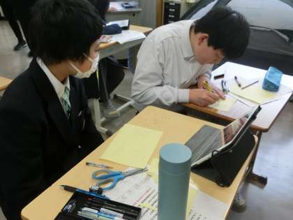 一年の学習の締めくくりとして、「新聞記者になって、仲間にインタビューしよう!」をテーマに、今年度の三大ニュースを取材して新聞にまとめる学習に取り組んでいました。新聞づくりに向け、記事のネタはずいぶん集まってきたようです。新聞の出来上がりを楽しみにしたいと思います。