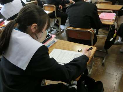 来年度早々、「中学生の主張作文」に取り組むため、さっそくその文章構成を考えていました。まずは主張した内容を明確にするため、テーマを絞り、完成での段取りを考え、作文に必要な素材をこれから集めていきます。