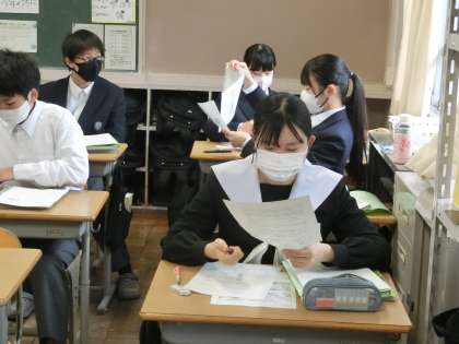 先日実施された公立高校の入試問題にチャレンジしていました。これまでの学習も入試にとても重要であることを実感していたようです。