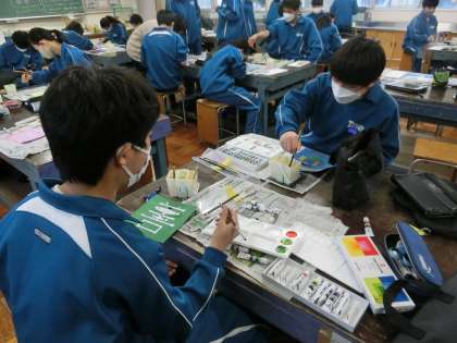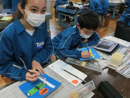 「シンボルネーム」の作品づくりです。名前の一文字を使い、自身を象徴する作品に仕上げていきます。色付けもイメージどおり、順調に進んでいるようです。