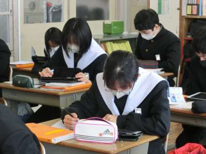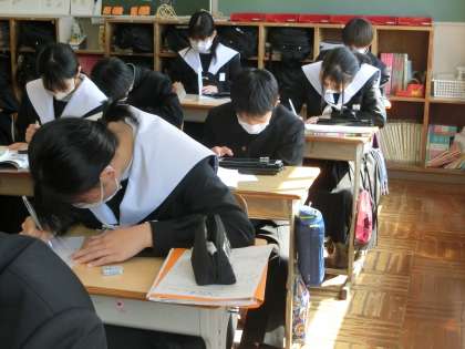 ジャンプ課題の「一年間で学習した内容の中から興味あることをさらに追究」についてレポート作成に取り組んでいました。学習を深めることで新たな発見、意識の深化を期待したいと思います。