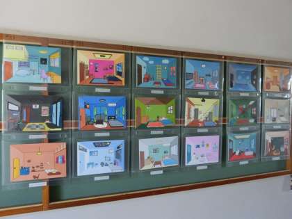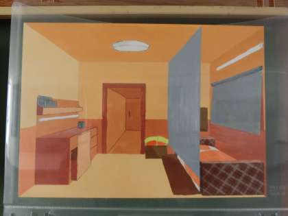 一点透視図法を用いた「理想の空間(私の理想の部屋)」をテーマにした作品です。それぞれがイメージした生活したい部屋が見事に表現されています。