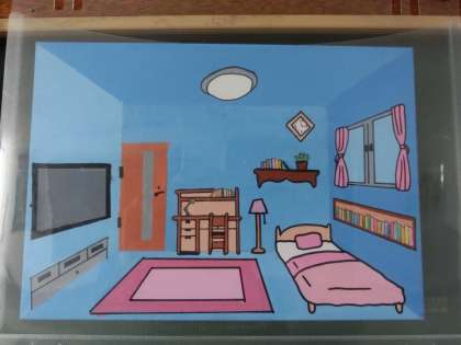 一点透視図法を用いた「理想の空間(私の理想の部屋)」をテーマにした作品です。それぞれがイメージした生活したい部屋が見事に表現されています。