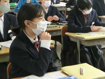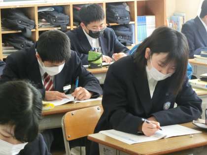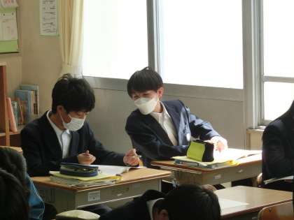 ことばのきまりの学習に取り組んでいました。また、前回までで発表を終えた「ビブリオバトル」で仲間の投票を多く獲得した生徒に「本日のチャンプ本」の称号が渡されていました。