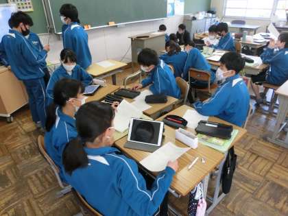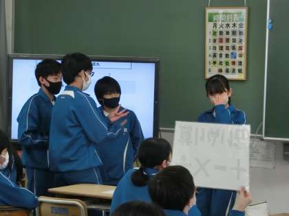 特定のテーマの是非について、賛成・反対の立場に分かれてそれぞれの考えを主張する「ディベート」に挑戦していました。グループが3つのテーマの対戦として分かれて主張し合います。途中、作戦会議を開いたりして、聞いている人たちの関心を引いていきます。