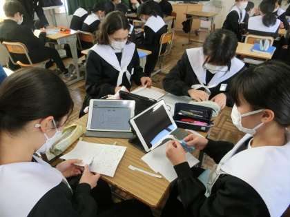 3/14 2-1 チャレンジ間近 3 公開日 2024/03/14 更新日 2024/03/14 各学年から 2年1組の数学の授業の様子です。 「オリジナルの問題を作ろう」というジャンプ課題に取り組んでいます。グループで考えてきた問題の模範解答を作り、いよいよ全員でチャレンジしていきます。理解が不十分だった部分を発見したり、間違えやすい問題のクセを知ったりしながら、クラス全員でレベルアップを図ってもらいたいと思います。