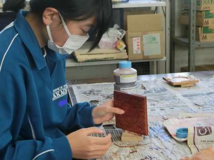 3/15 2-1 納得のいく作品に… 2 公開日 2024/03/15 更新日 2024/03/15 各学年から 2年1組の美術の授業の様子です。 木彫の学習・木製コースターづくりもいよいよ大詰めです。必死に彫りの活動に取り組んでいる生徒がいます。また、一生懸命彫り上げた作品にニスを塗っている生徒もいます。納得のいく作品に仕上がること願っています。