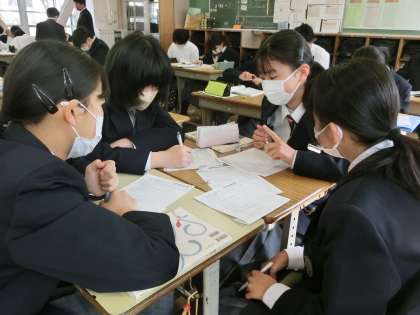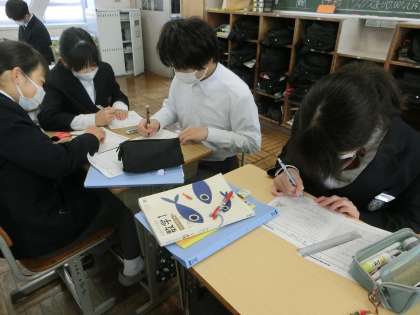 一年間の総復習を仲間と取り組んでいました。単元の復習プリントやテキストなどを使い、来年度早々のテストを見据えてしっかり復習していました。