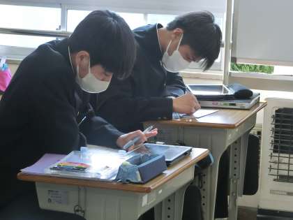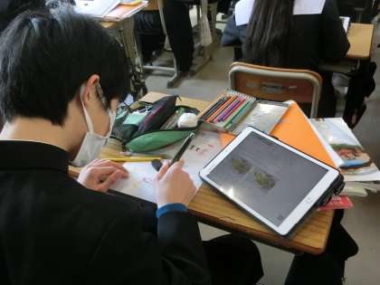 ジャンプ課題の「一年間で学習した内容の中から興味あることをさらに追究」についてレポート作成に取り組んでいました。学習を深めることで新たな発見、知識の深化を期待したいと思います。