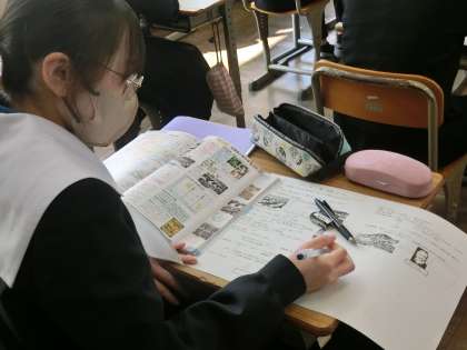 2年3組の社会・歴史分野の授業の様子です。