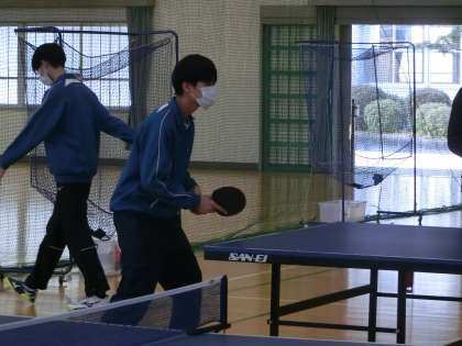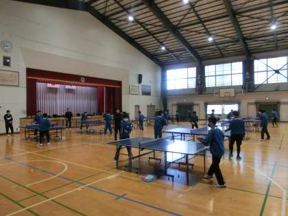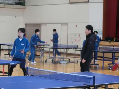 写真は、卓球部の活動の様子です。地域指導者の熱心な指導のもと、生徒たちも一生懸命練習メニューに取り組んでいました。