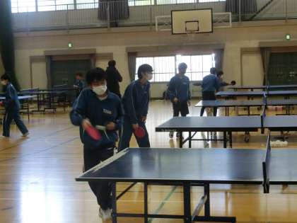 写真は、卓球部の活動の様子です。地域指導者の熱心な指導のもと、生徒たちも一生懸命練習メニューに取り組んでいました。