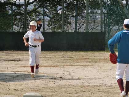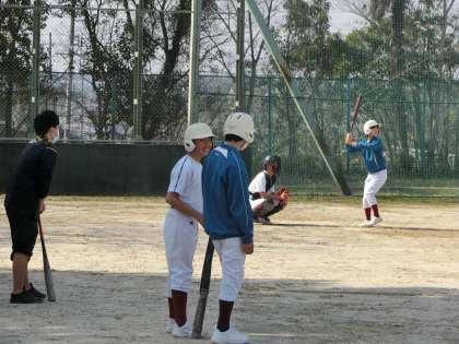 写真は、野球部の活動の様子です。先日卒業したばかりの先輩の熱血コーチ炸裂です。本当にありがたいことです。