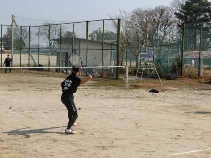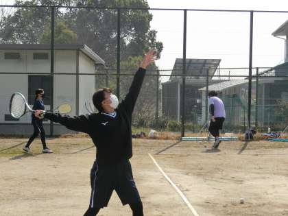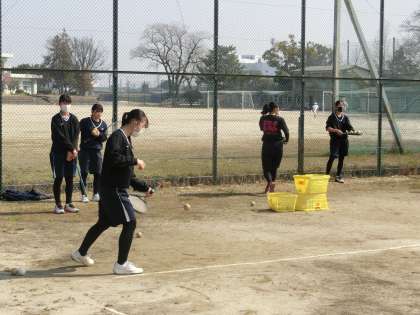 写真は、ソフトテニス部の活動の様子です。先日卒業したばかりの先輩が後輩の練習相手として参加してくれました。本当にありがたいことです。