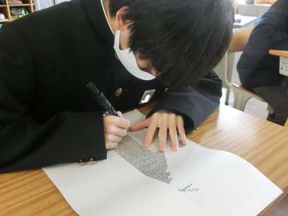 今年の干支「竜」を題材とした切り絵と点描技法を活用したドットアートの作品づくりに取り組んでいました。どちらも自身が気に入ったデザインで活動を進めているため、集中力の凄さを感じました。