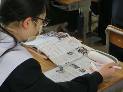 「韓国と中国ではどんな動きがあった?」をテーマに学習が進められていました。映像をじっくり見ながら、当時の様子をしっかり学んでいました。
