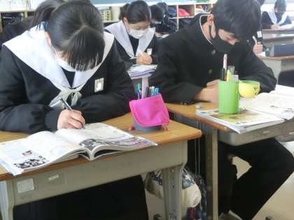 2年5組の社会・歴史分野の授業の様子です。
