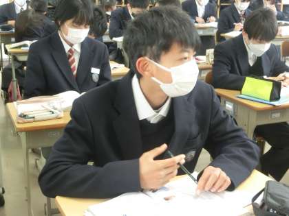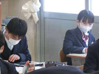 「実験できないことがらの確立を考えよう!」をテーマに学習が進められていました。「女児の生まれる確率」が例題として示され、過去のデータから平均して49パーセントであることを知り、みなが驚いていました。