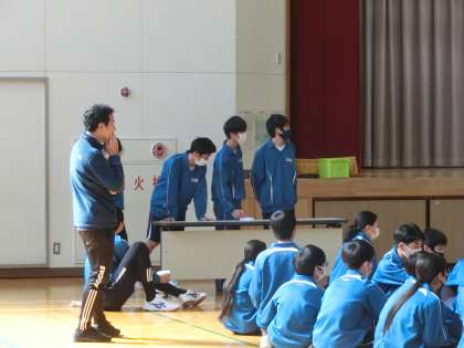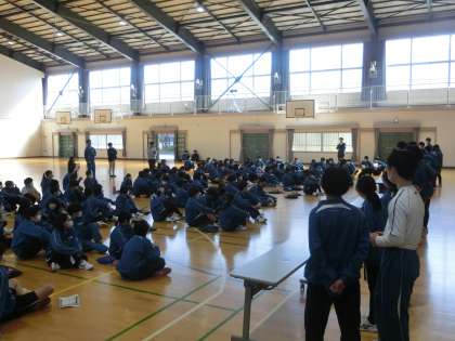 体育館に一堂に会し、実行委員の生徒たちが綿密な準備をして開催しました。こうして仲間と過ごして得たものを4月からは学校の顔として発揮してほしいと思います。