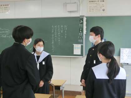 朝の活動時に行われた今年度最終となる「たかまるタイム(第39回)」・2年生の様子です。