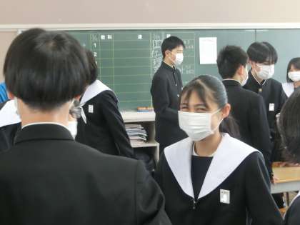 朝の活動時に行われた今年度最終となる「たかまるタイム(第39回)」・2年生の様子です。