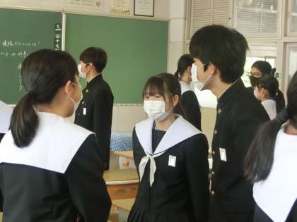 朝の活動時に行われた今年度最終となる「たかまるタイム(第39回)」・2年生の様子です。