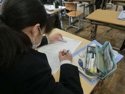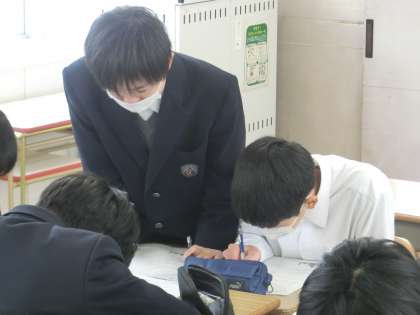 一年間の学習の総復習に取り組んでいました。気の合う仲間と一緒に勉強しながら、気軽に質問していきます。また、自力でどこまで解けるかを確かめている生徒もいました。
