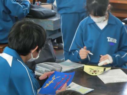 「シンボルネーム」の作品づくりもいよいよ最終の鑑賞会に入っていきます。仲間から作品のアピールポイントや作品づくりで苦労した点などを聞きながら鑑賞していきます。それと同時に、今後の作品づくりのヒントももらっているようでした。