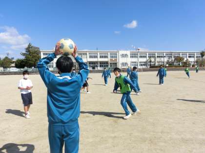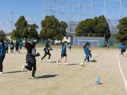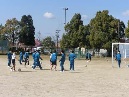 強風に負けず、運動場でのサッカーのゲームで汗を流していました。