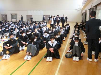 3/22 いつもより緊張気味… 公開日 2024/03/22 更新日 2024/03/22 学校行事 令和5年度の最終日。修了式が行われる日です。 いつもの集会と違って少し緊張気味の1,2年生。 学年集団の横では、たくさんの表彰対象者が事前の確認をしています。 間もなく、修了式が始まります…。