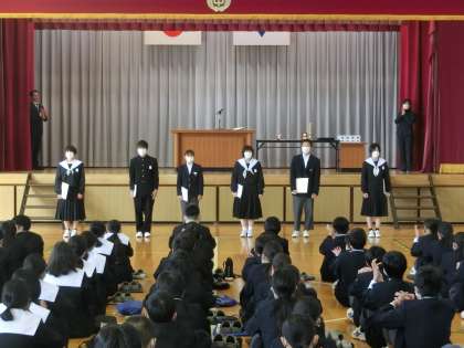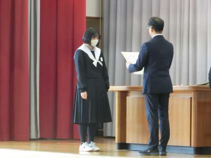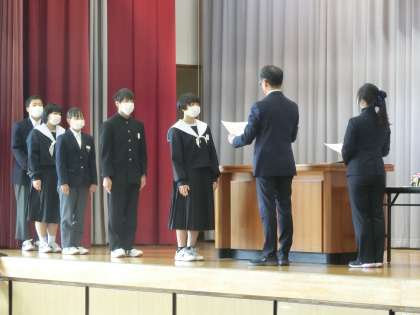 修了式に先立って、令和6年度前期生徒会役員の認証と表彰伝達が行われました。
