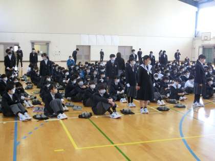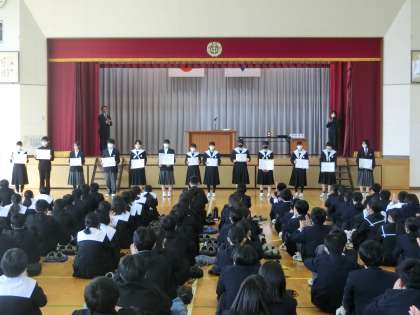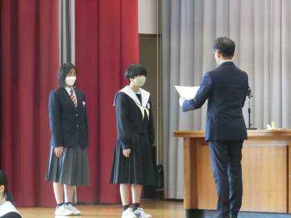 修了式に先立って、令和6年度前期生徒会役員の認証と表彰伝達が行われました。