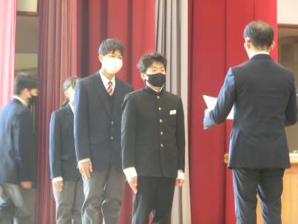 修了式に先立って、令和6年度前期生徒会役員の認証と表彰伝達が行われました。