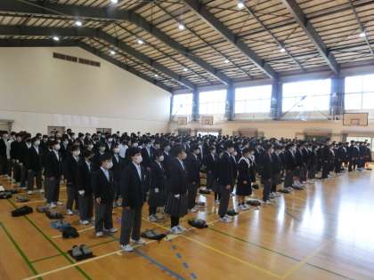 先の卒業式から復活した校歌斉唱。 生徒たちの高らかな声が体育館中に響き渡りました。