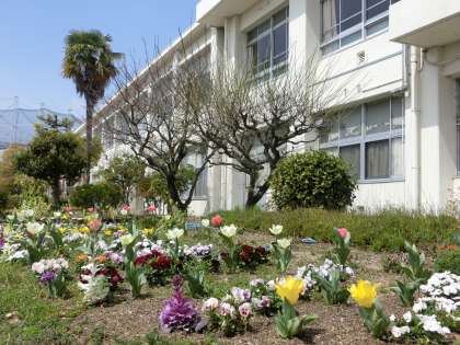 とても天気が良く、気温も一気に上がり、急に春本番を迎えた感じがします。校内の花壇の花もとてもきれいに咲いています。